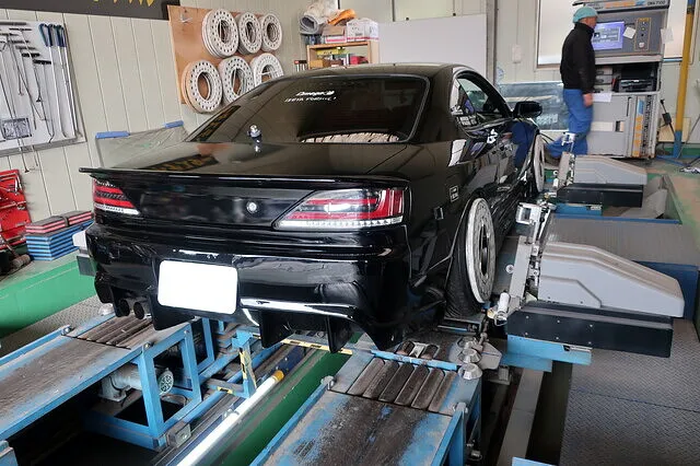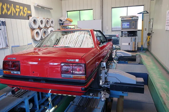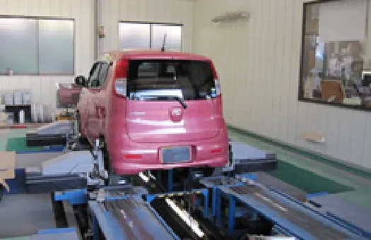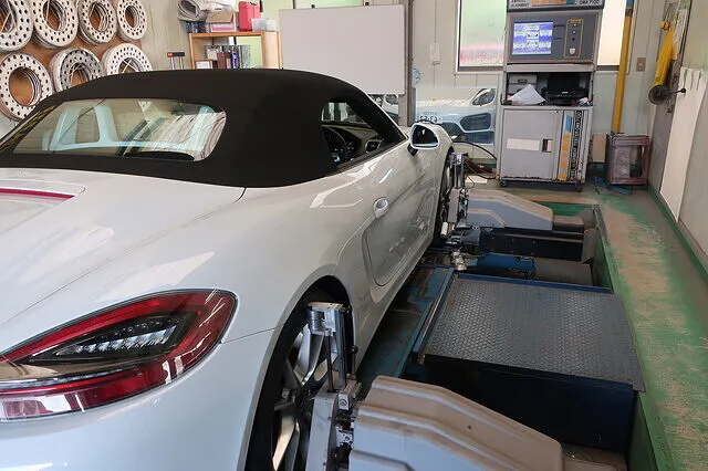 静かに車を乗り入れスイッチON。ローラーが回転し疑似走行状態を作ります。