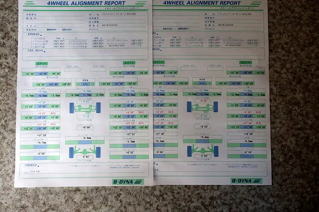 車でよく言われる「はずれの車」はアライメントの数値が基準の範囲内ではあっても、基準値の範囲外近くに調整されているということです。