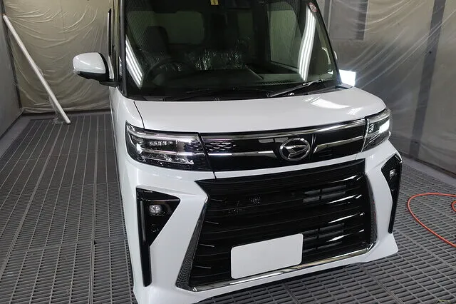 衝突軽減ブレーキのセンサーのエイミング作業時等に必要となる車両中心線をレーザーにて表示するサポートツールを導入し、作業の効率化と正確な点検を行なっております。